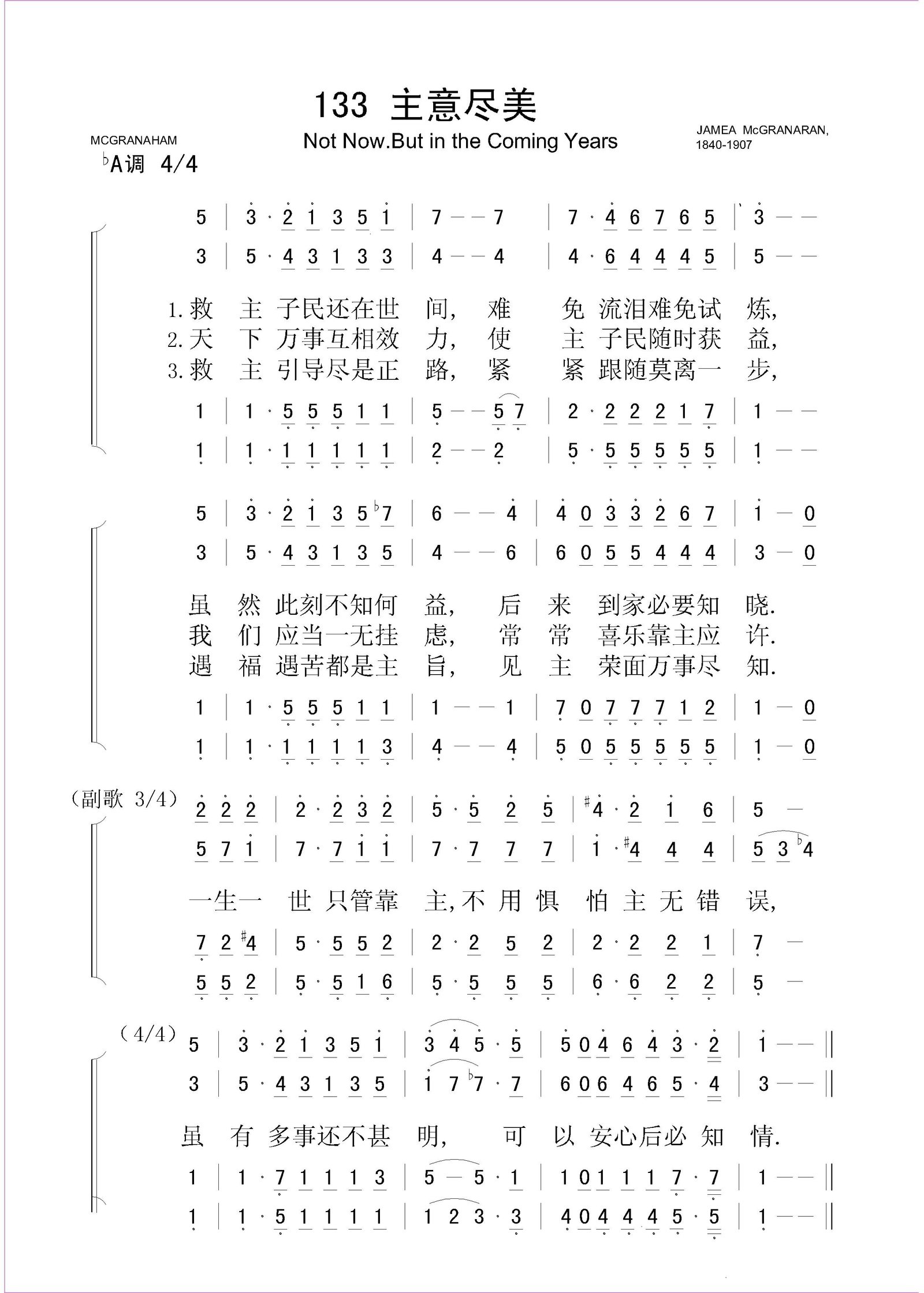主意尽美 – 四声部简谱