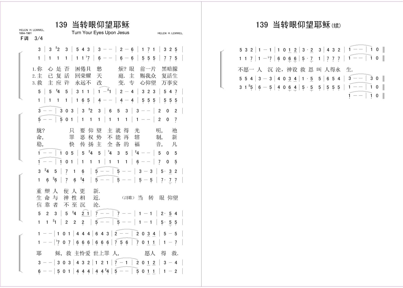 当转眼仰望耶稣 – 四声部简谱