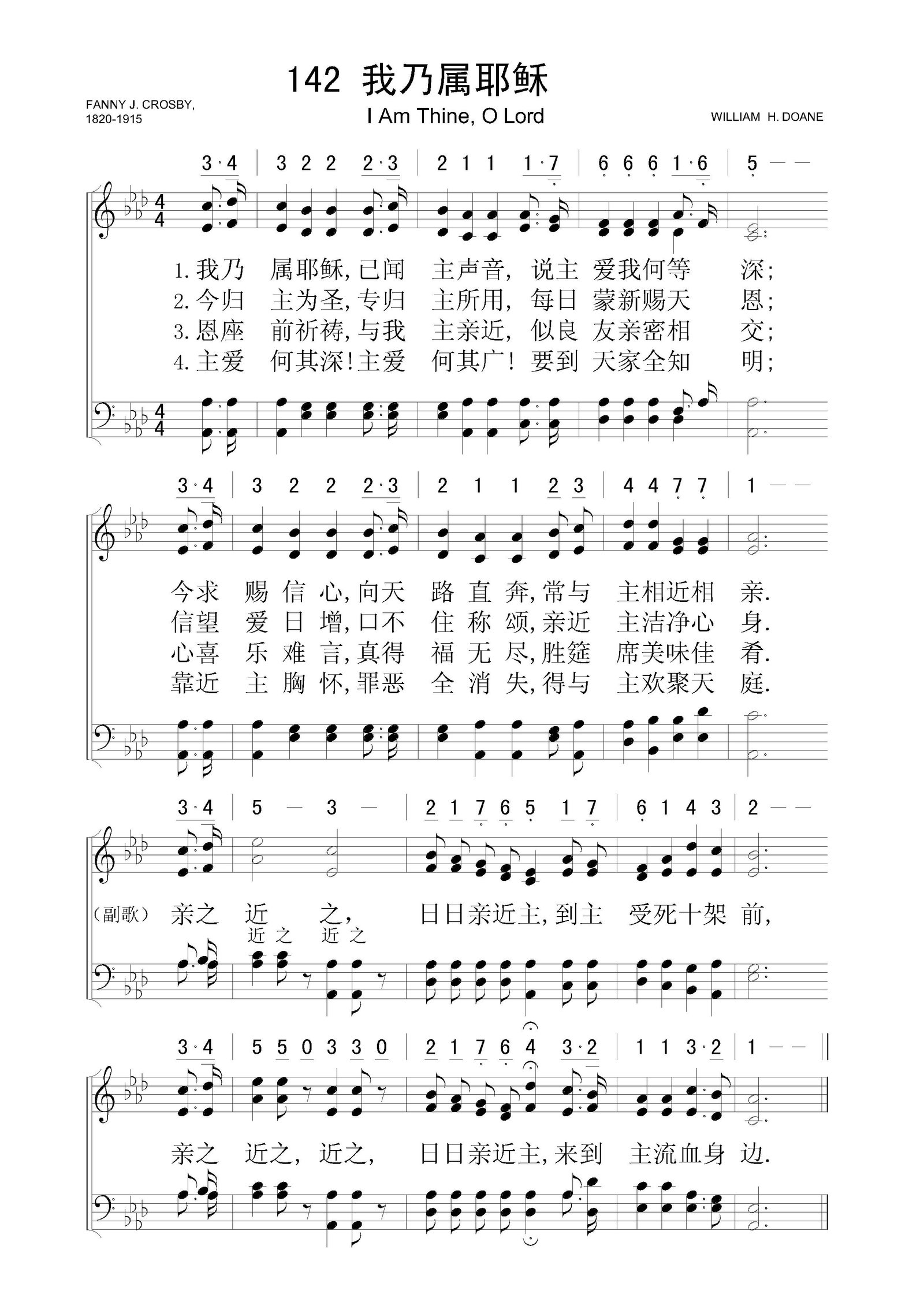 我乃属耶稣 – 四声部五线谱