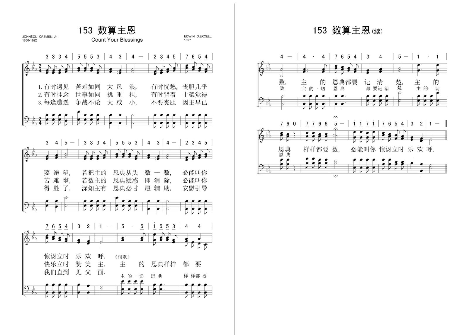 数算主恩 – 四声部五线谱