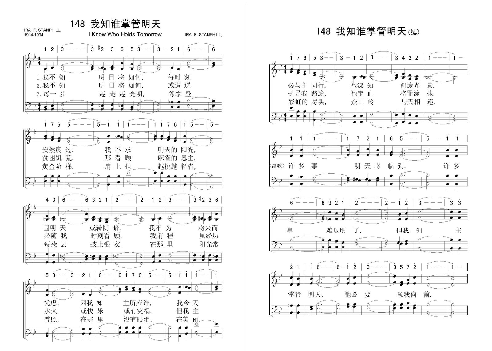 我知谁掌管明天 – 四声部五线谱