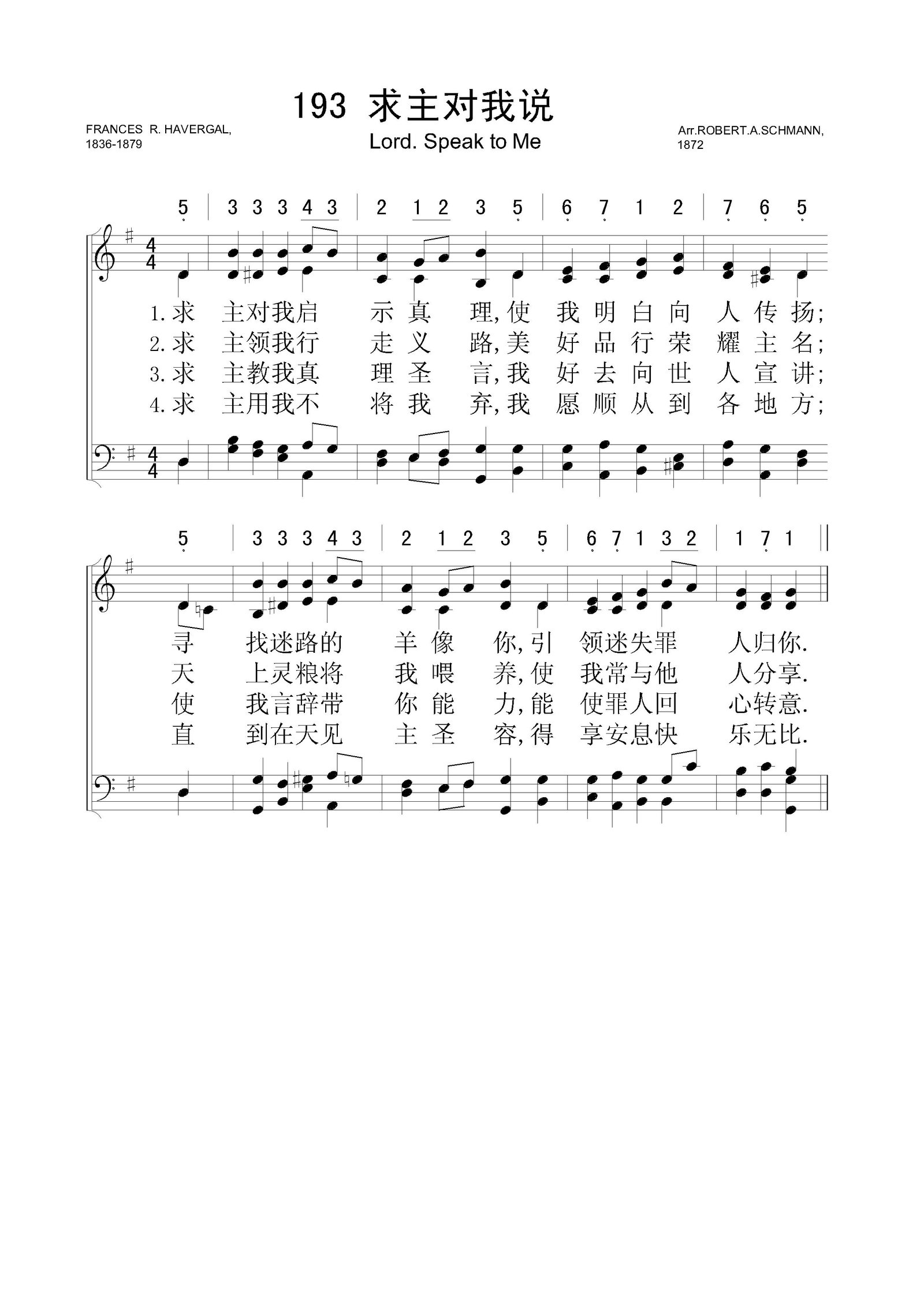 求主对我说 – 四声部五线谱