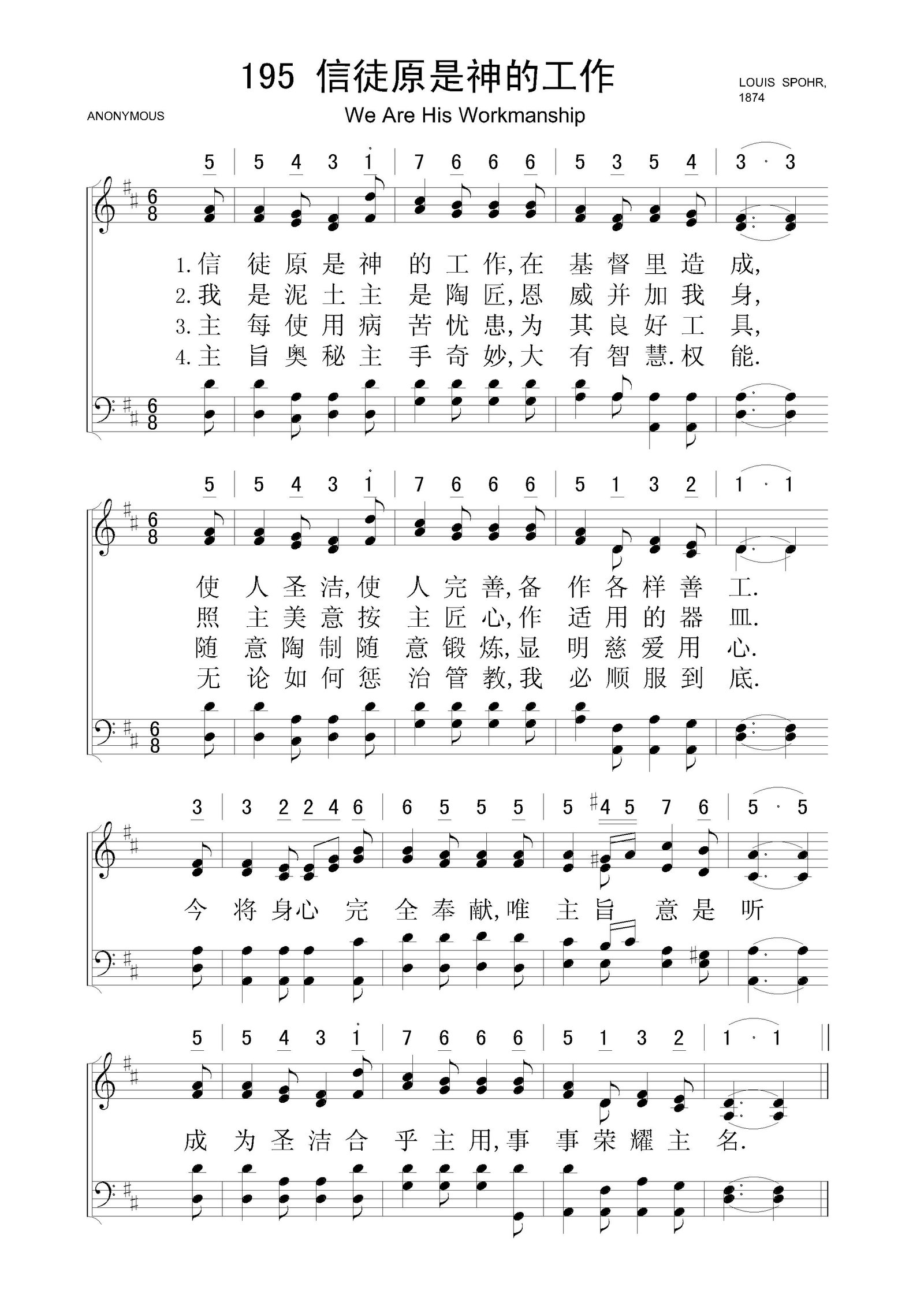 信徒原是神的工作 – 四声部五线谱