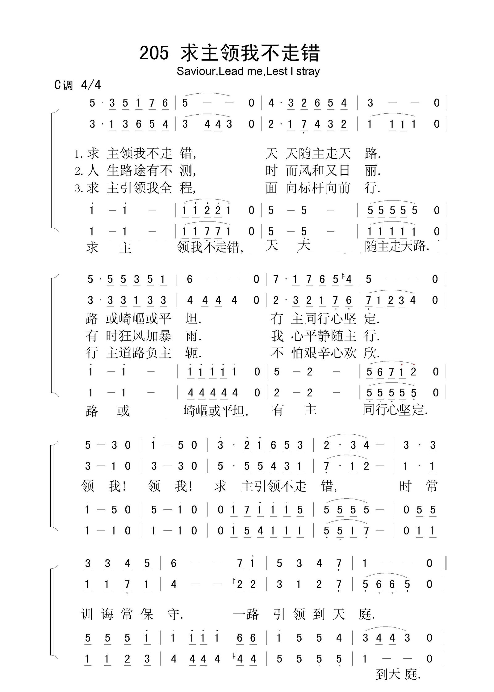 求主领我不走错 – 四声部简谱
