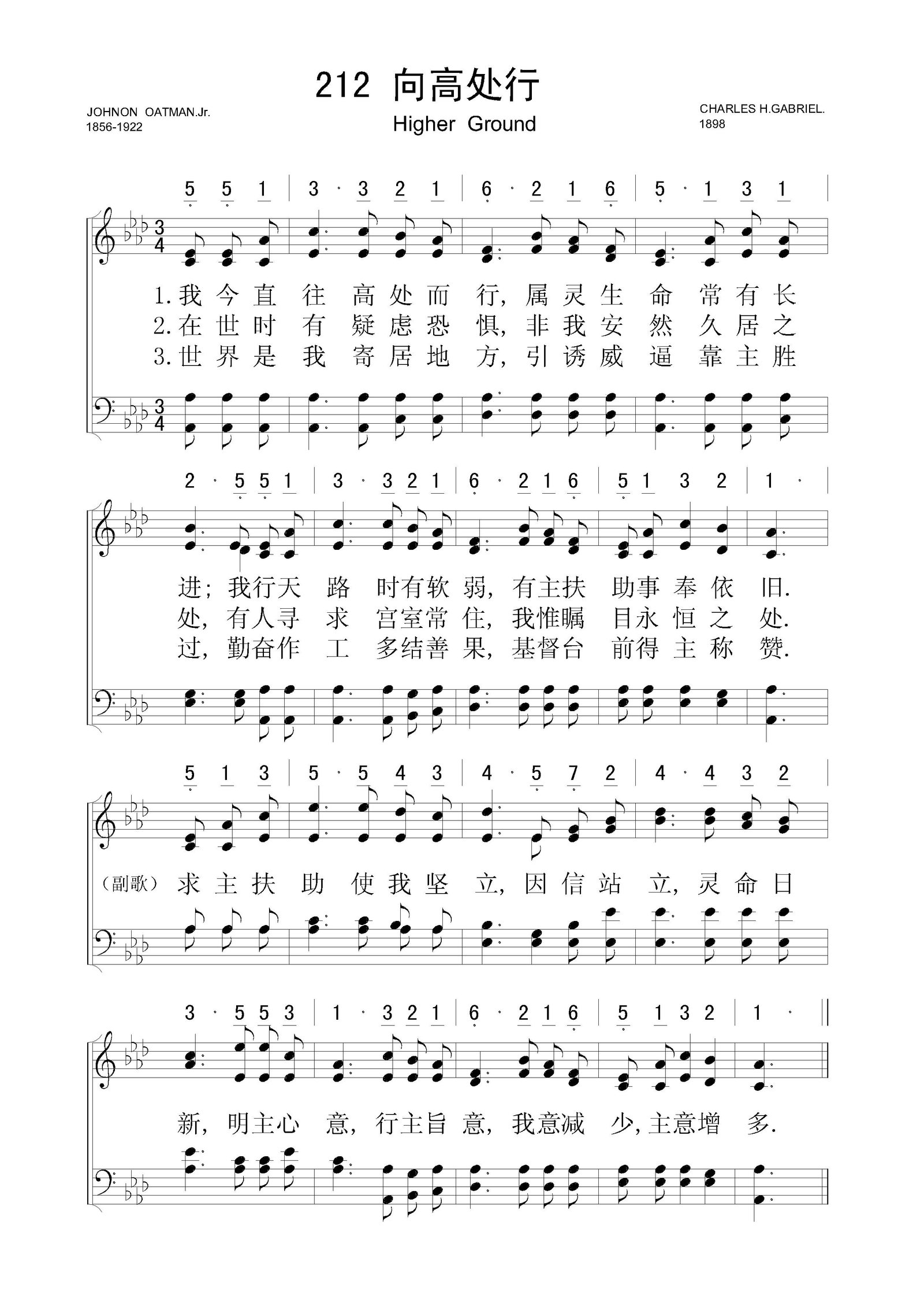 向高处行 – 四声部五线谱