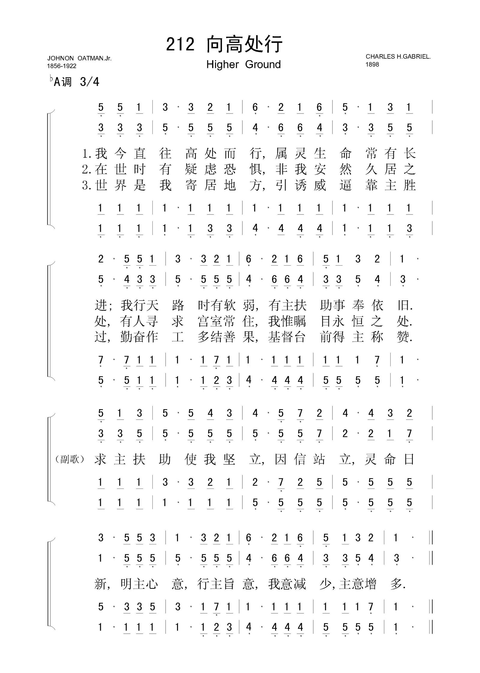 向高处行 – 四声部简谱