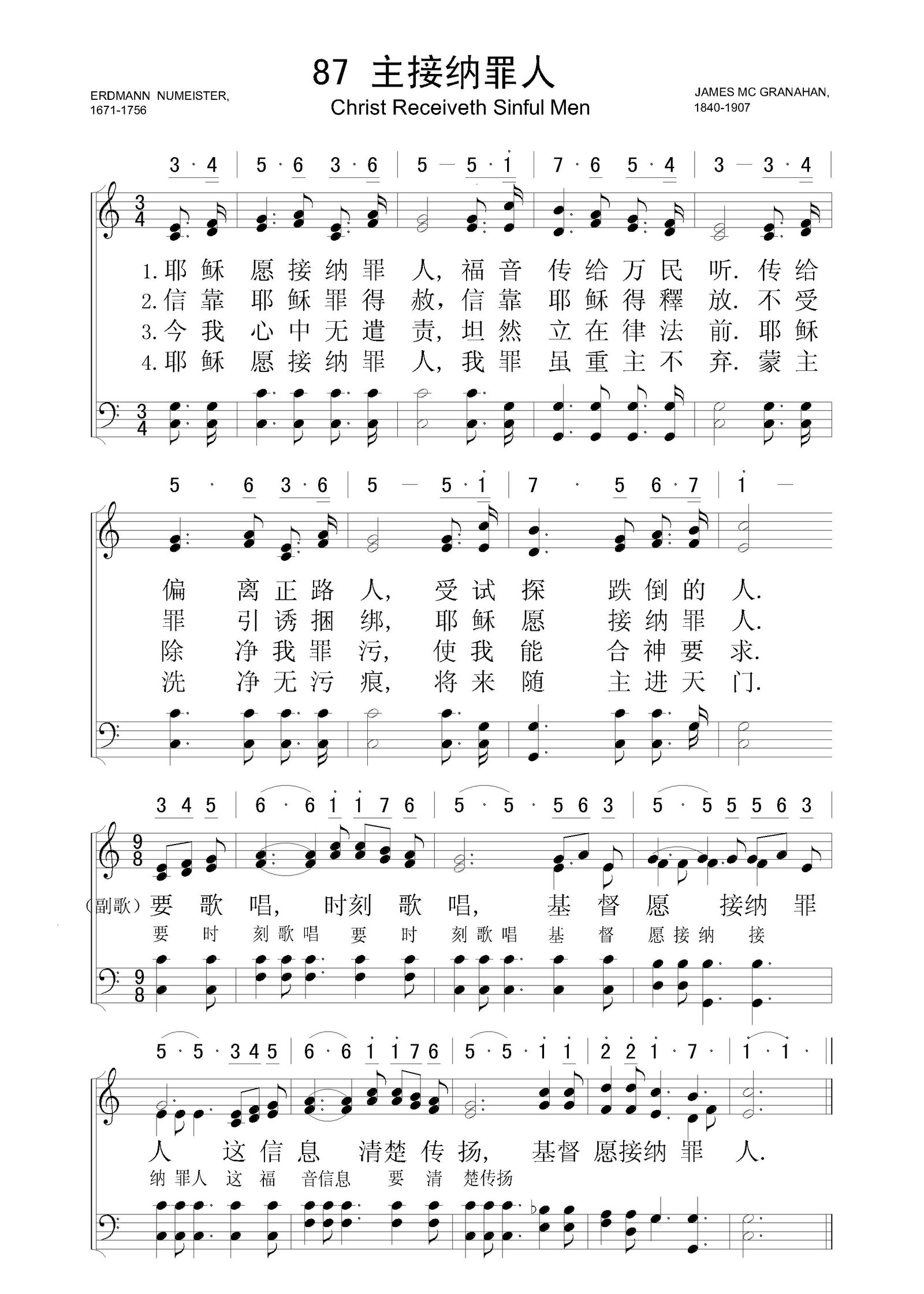 主接纳罪人 – 四声部五线谱