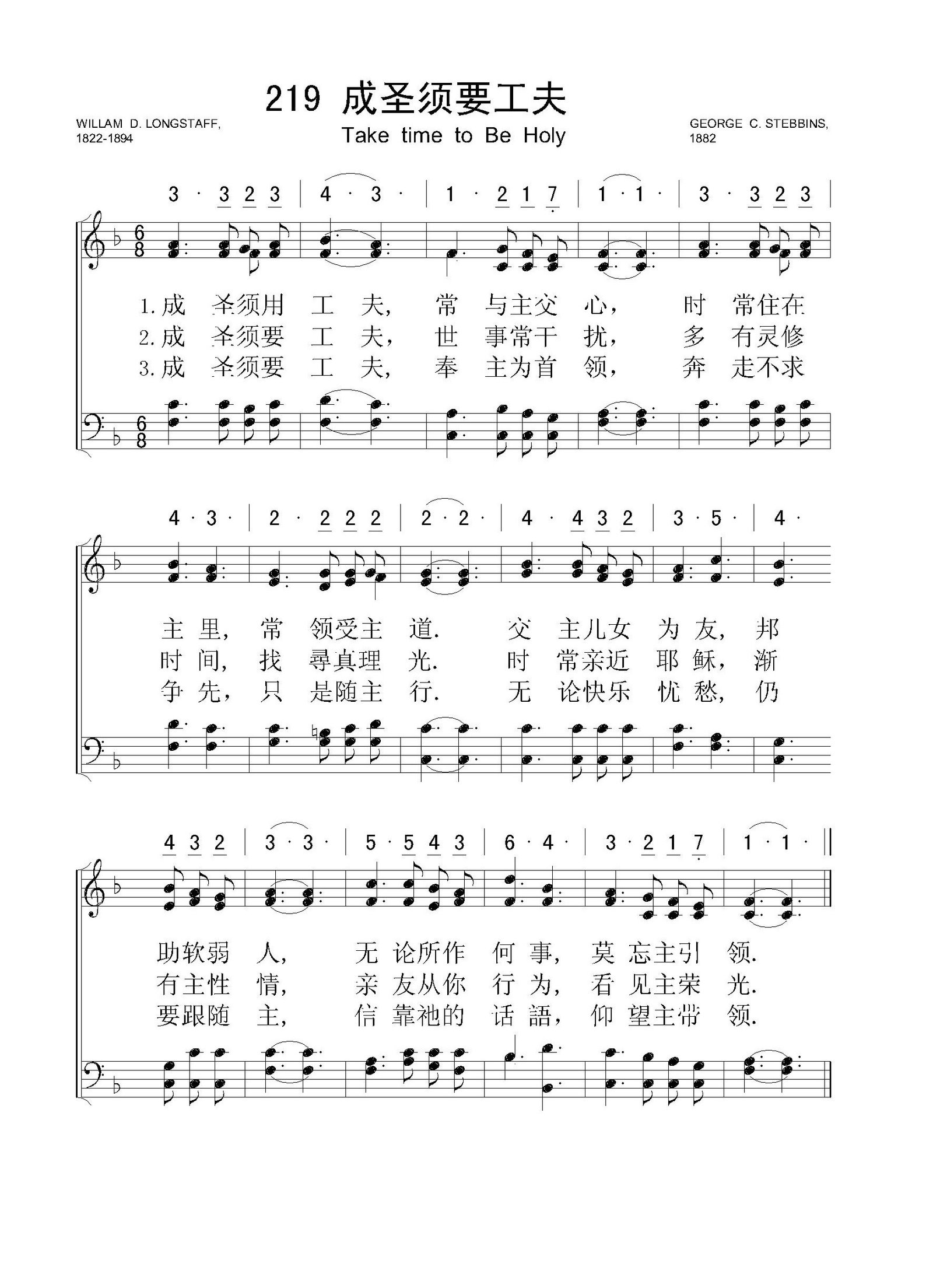 成圣须要工夫 – 四声部五线谱