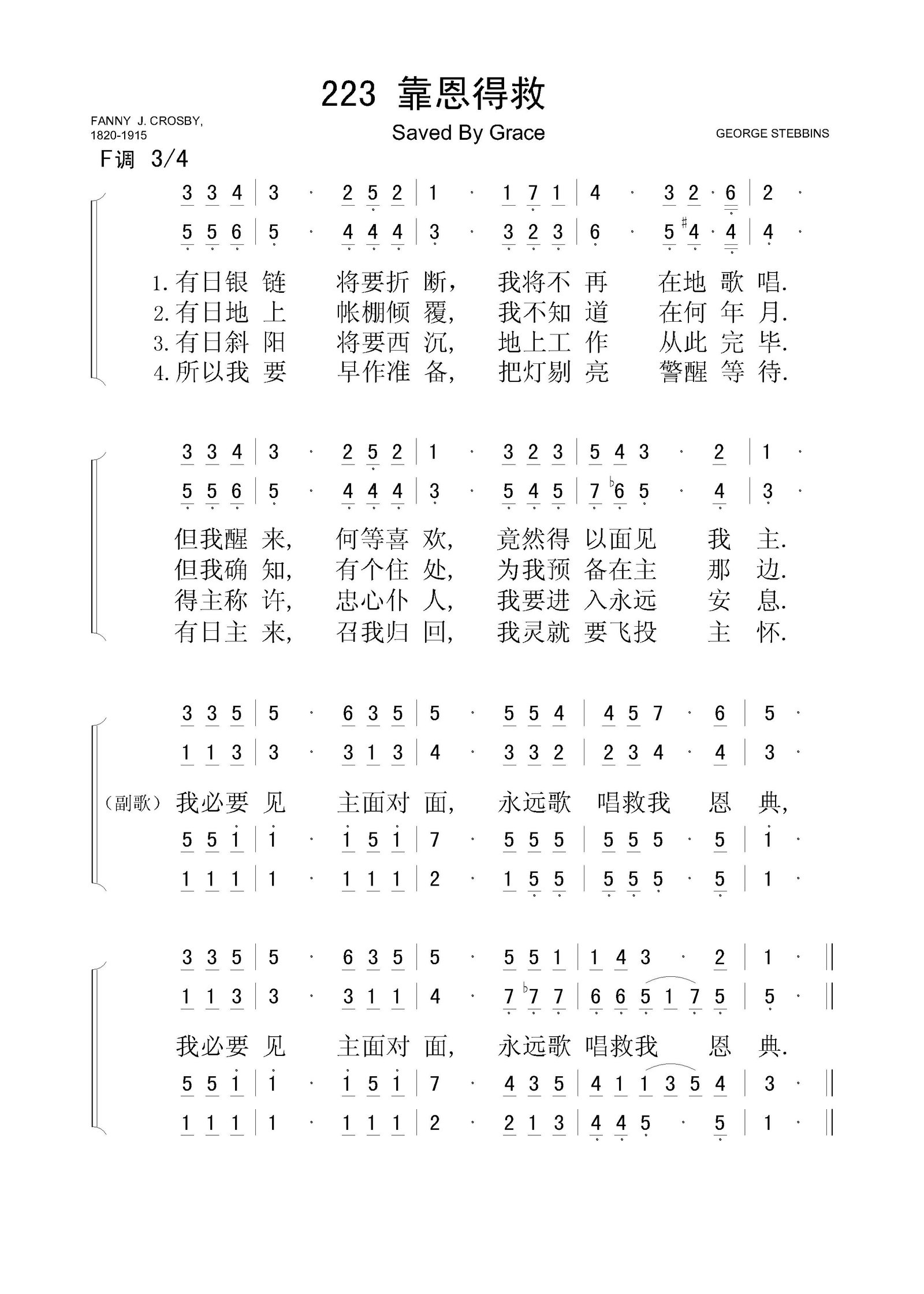 靠恩得救 – 四声部简谱