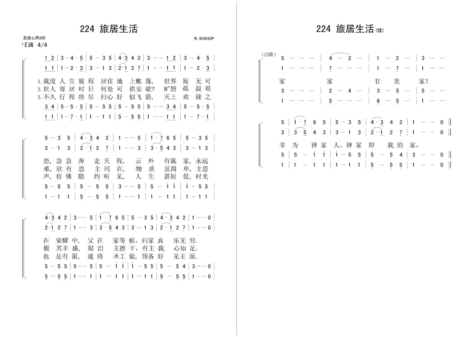 旅居生活 – 四声部简谱