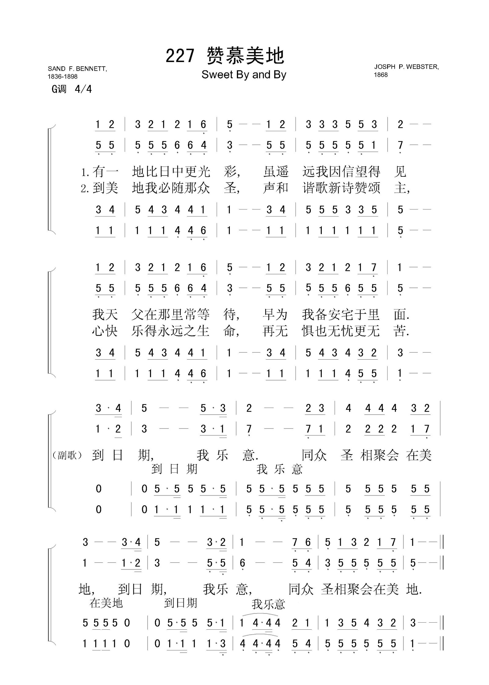 赞慕美地 – 四声部简谱