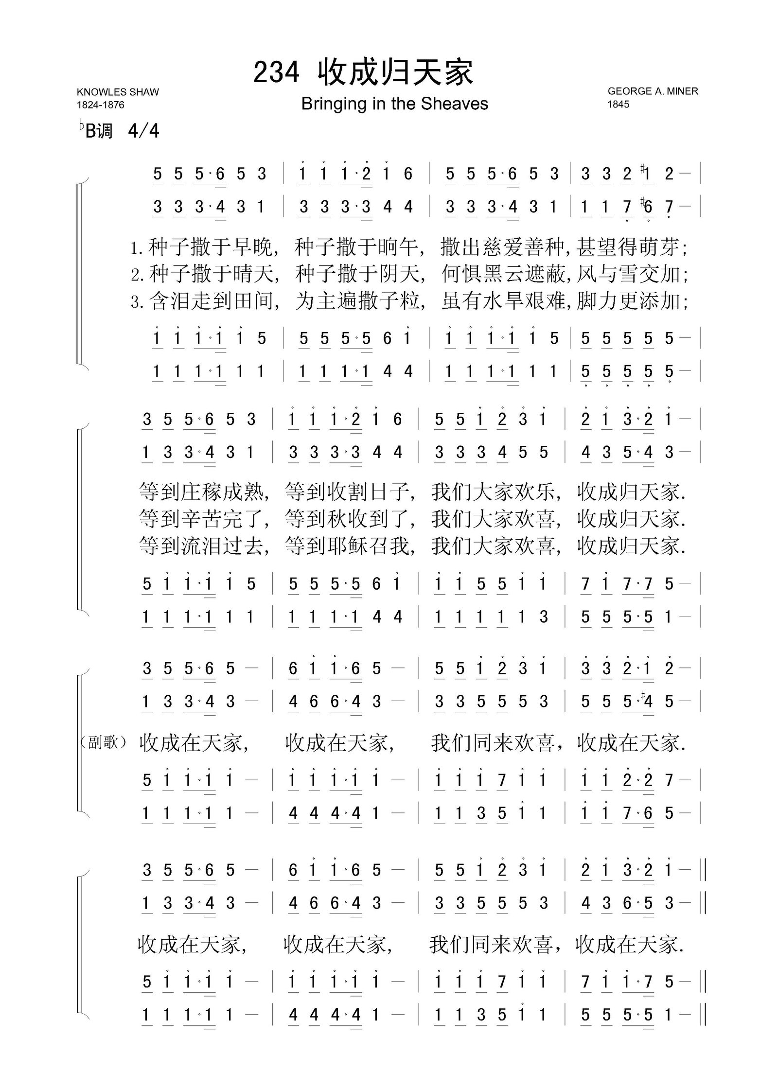 收成归天家 – 四声部简谱