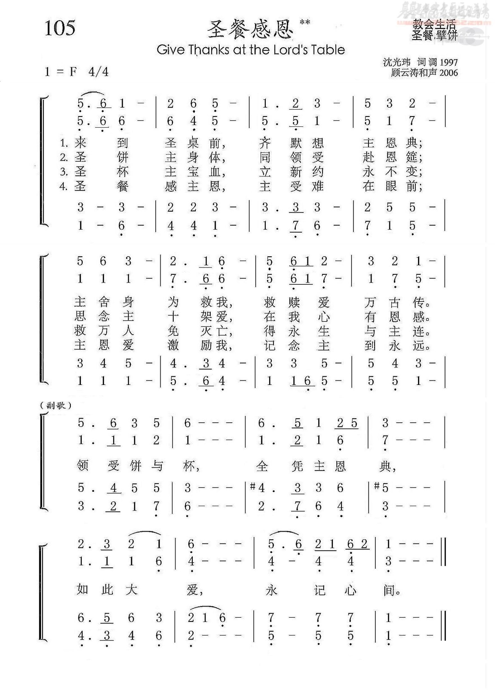 圣餐感恩 –《赞美诗(新编)补充本》第105首