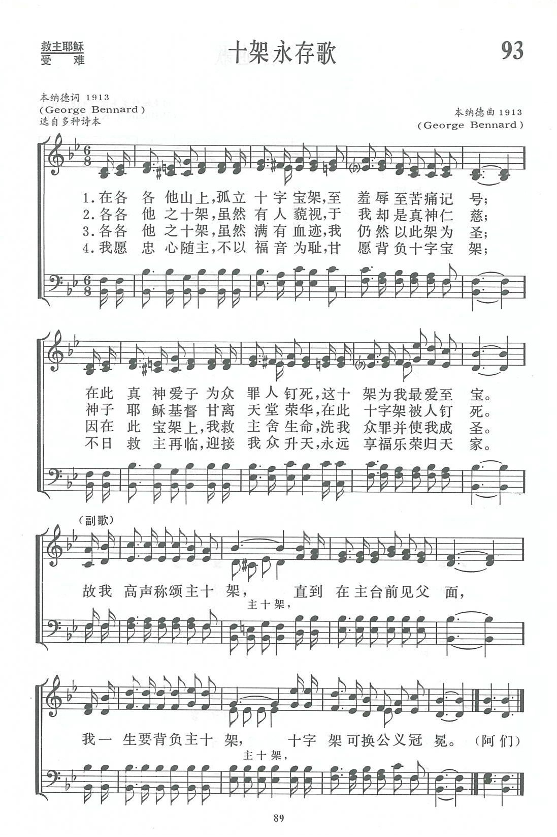各各他山岭上,孤立古旧十架,这乃是羞辱痛苦记号;神爱子主耶稣,为世人被钉死,这十架为我最爱最宝。