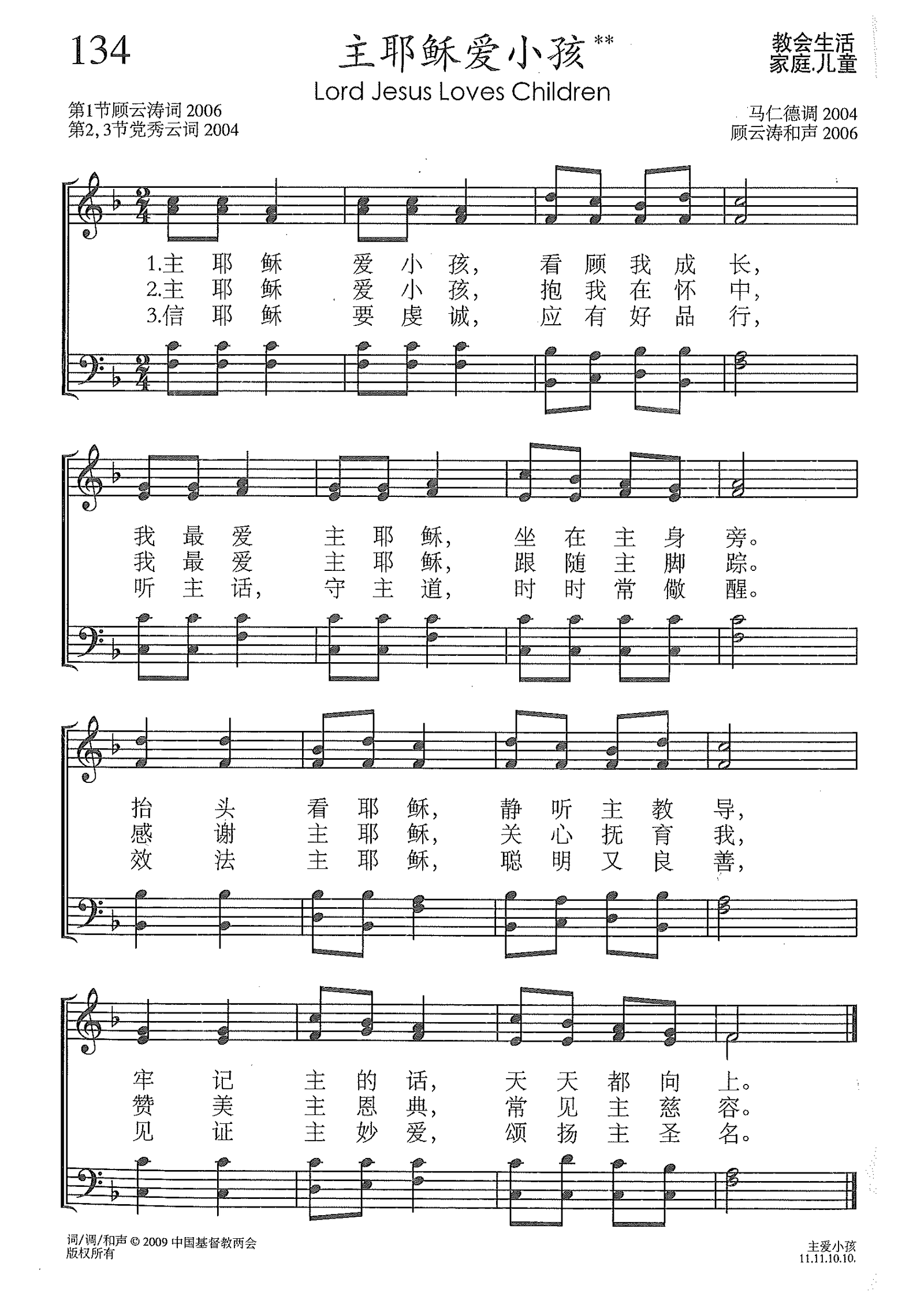 主耶稣爱小孩 –《赞美诗(新编)补充本》第134首