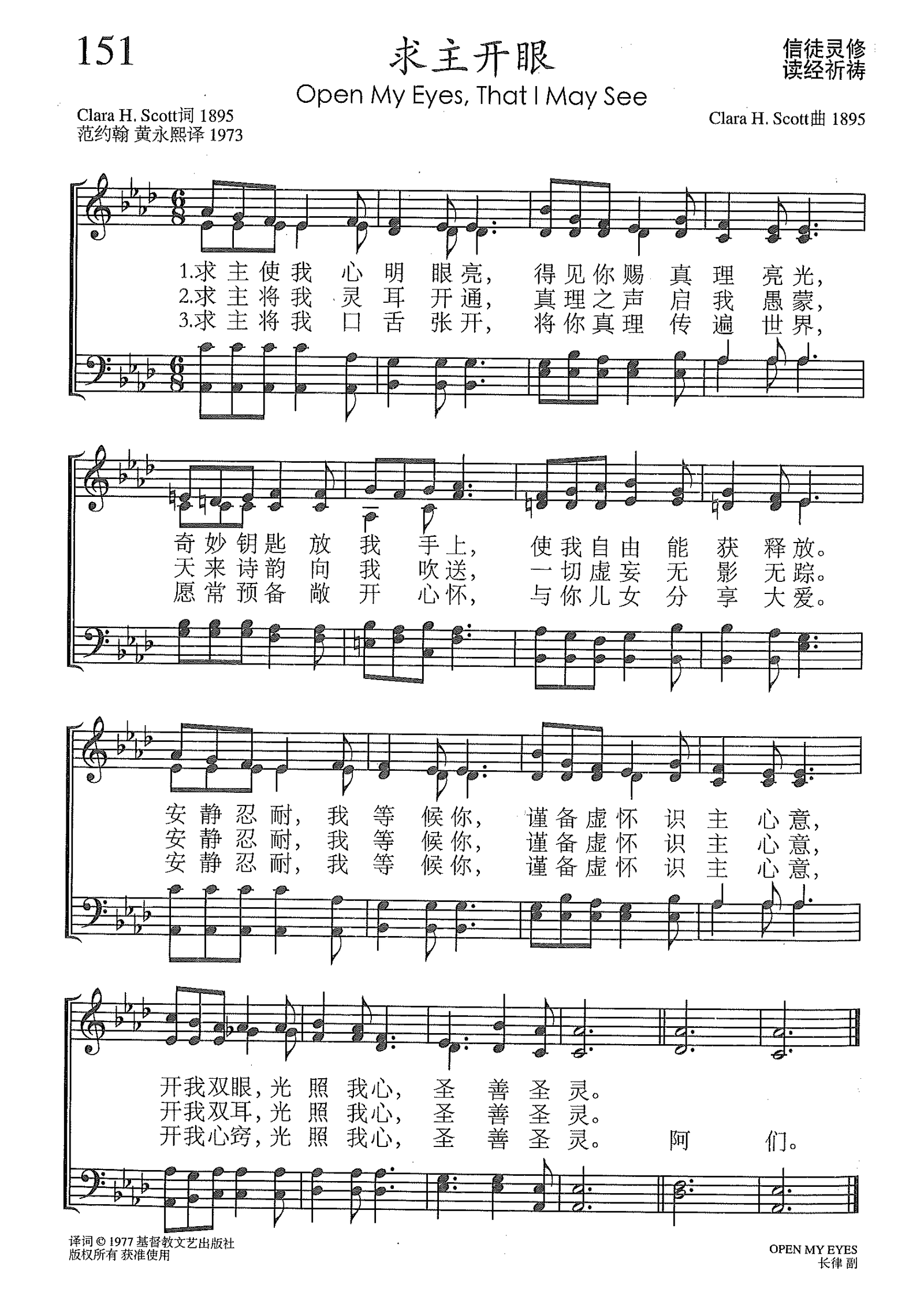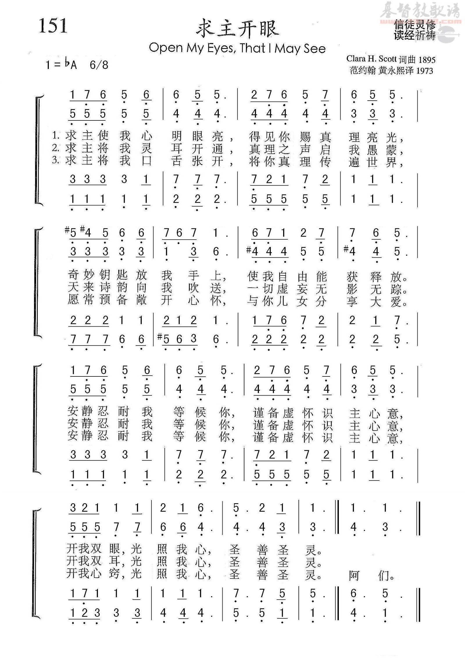 求主开眼 《 赞美诗(新编)补充本151首 》