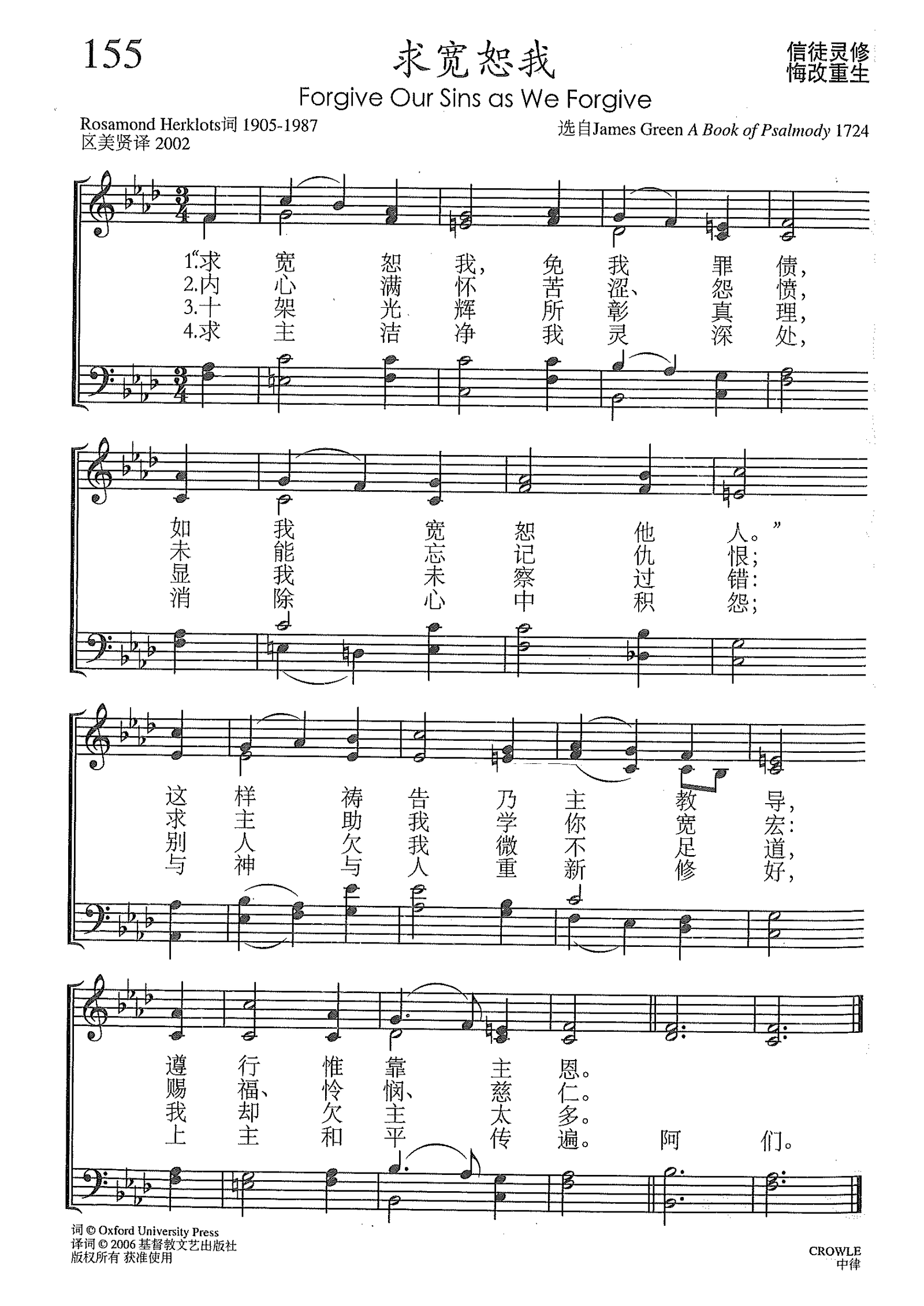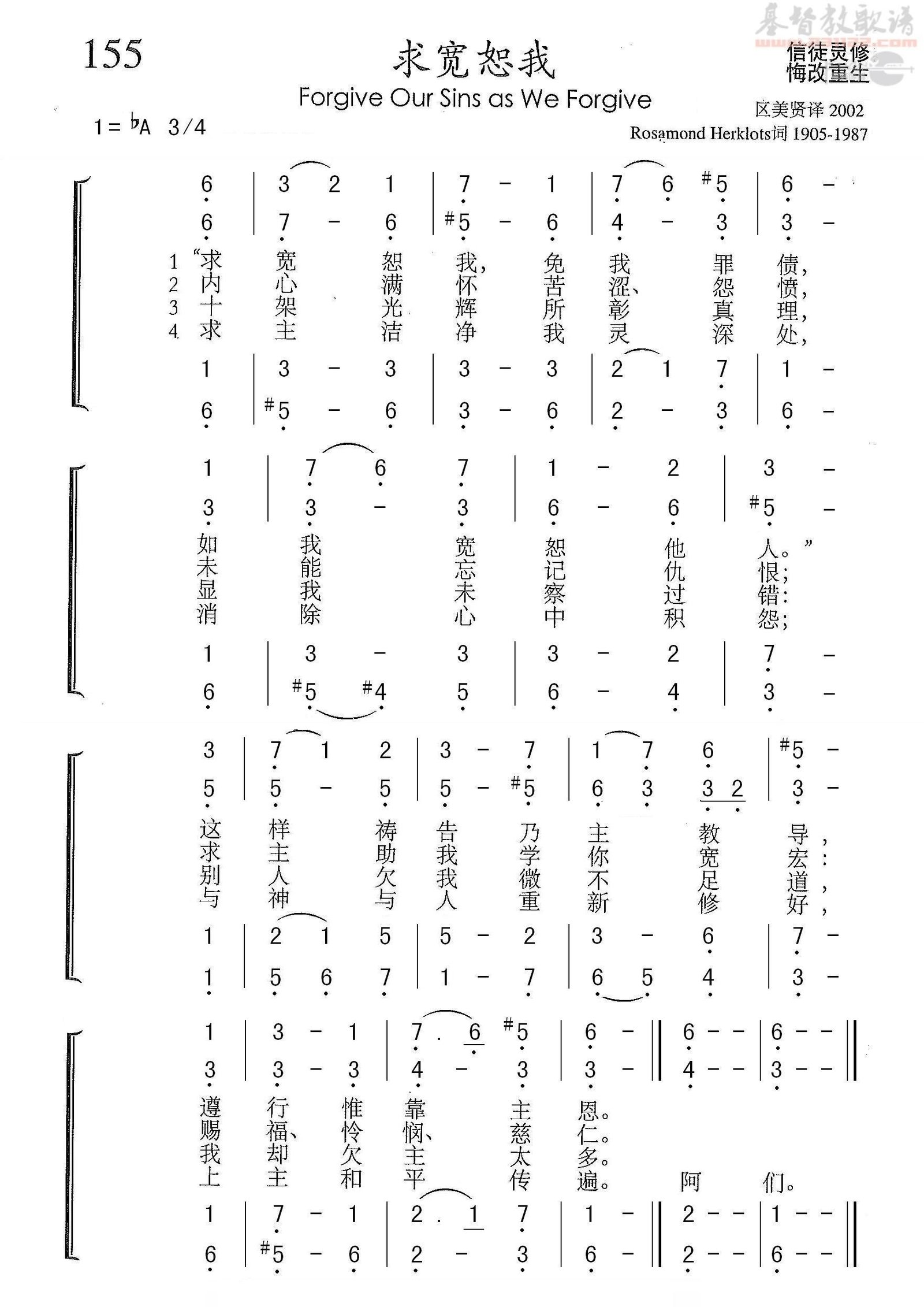 求宽恕我 –《赞美诗(新编)补充本》第155首
