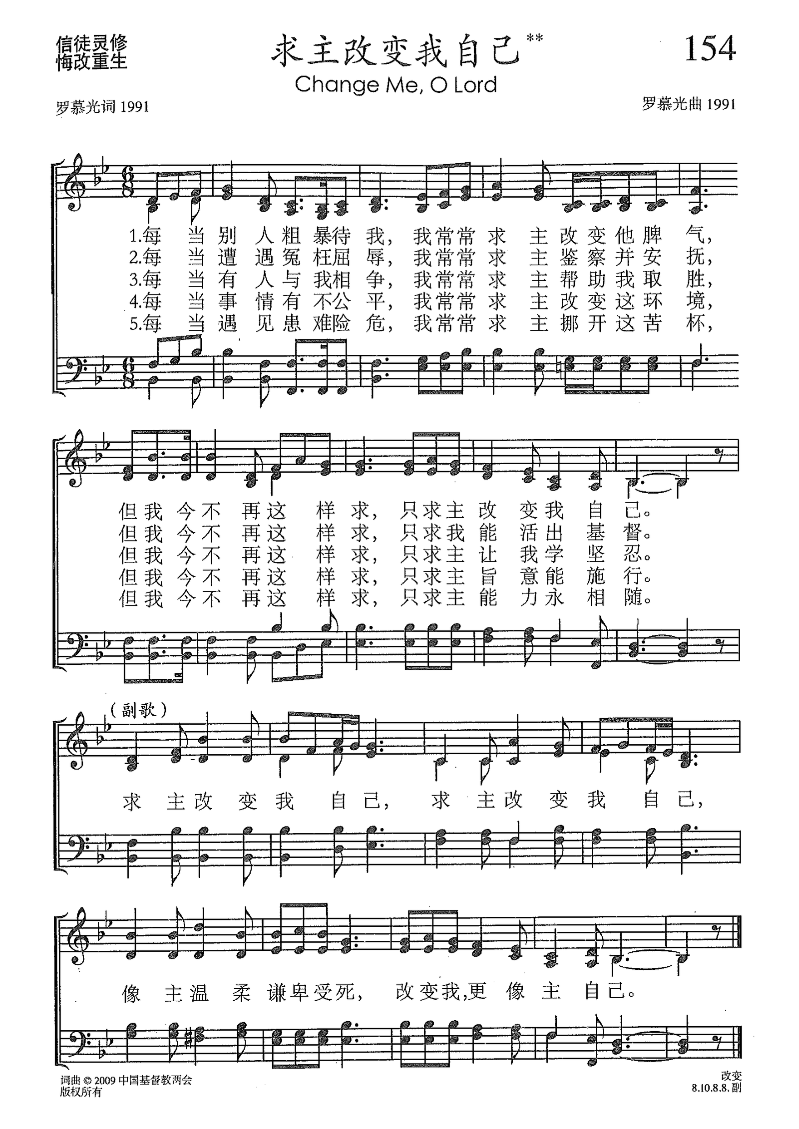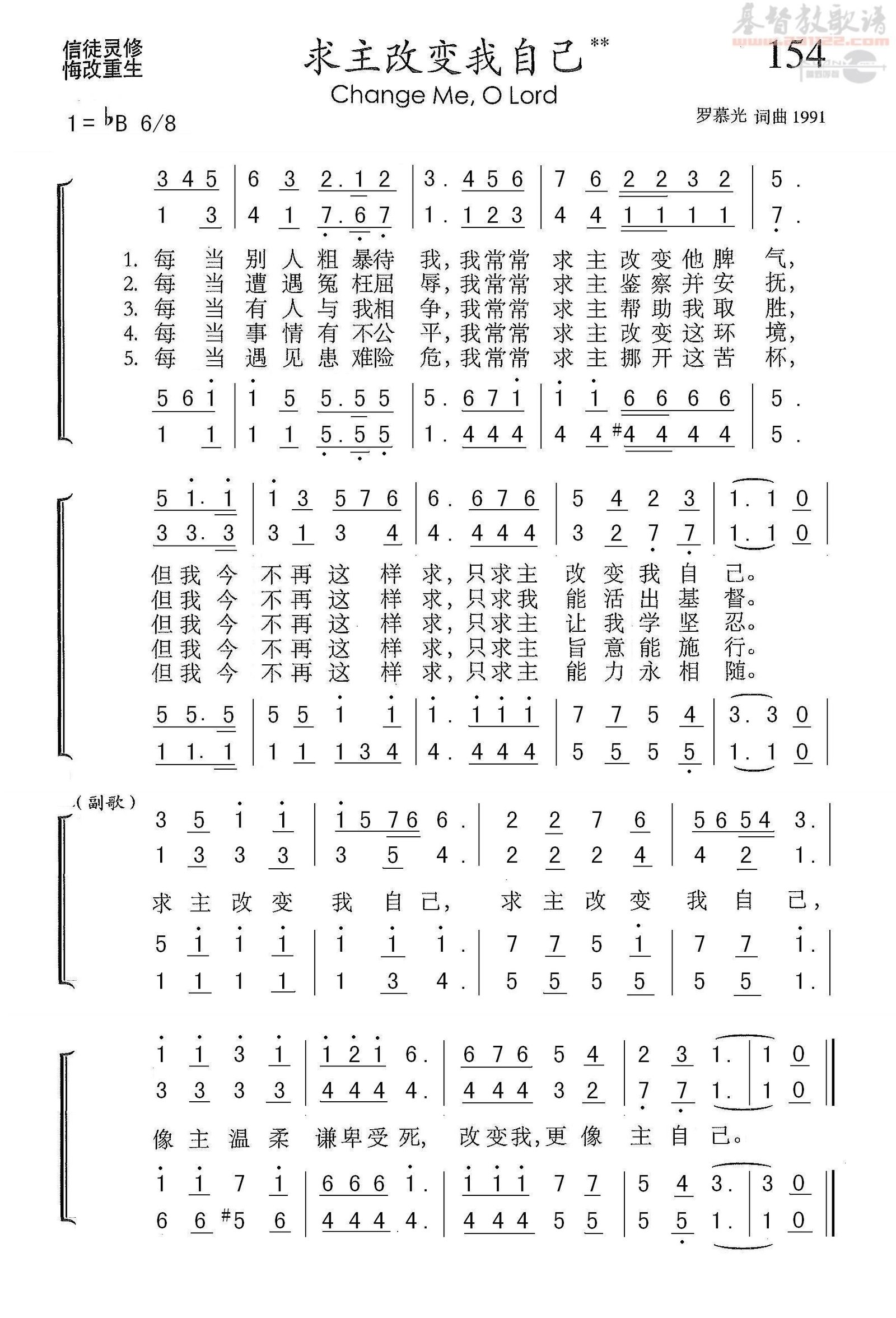求主改变我自己 《赞美诗(新编)补充本》第154首