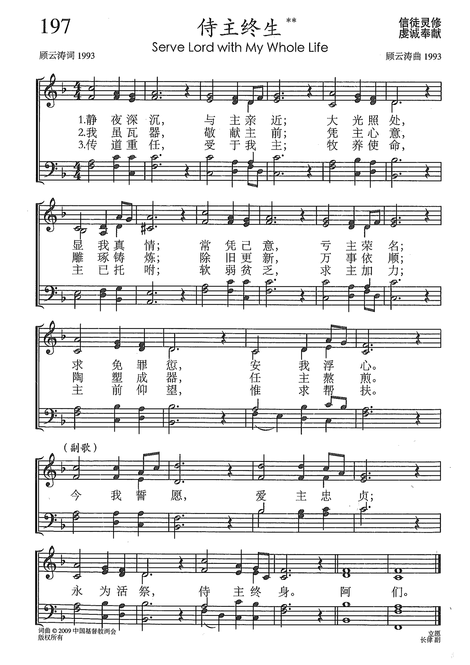 这首献心志的诗歌,我们当带着恳切、敬虔的心,用不快的中速弹唱。