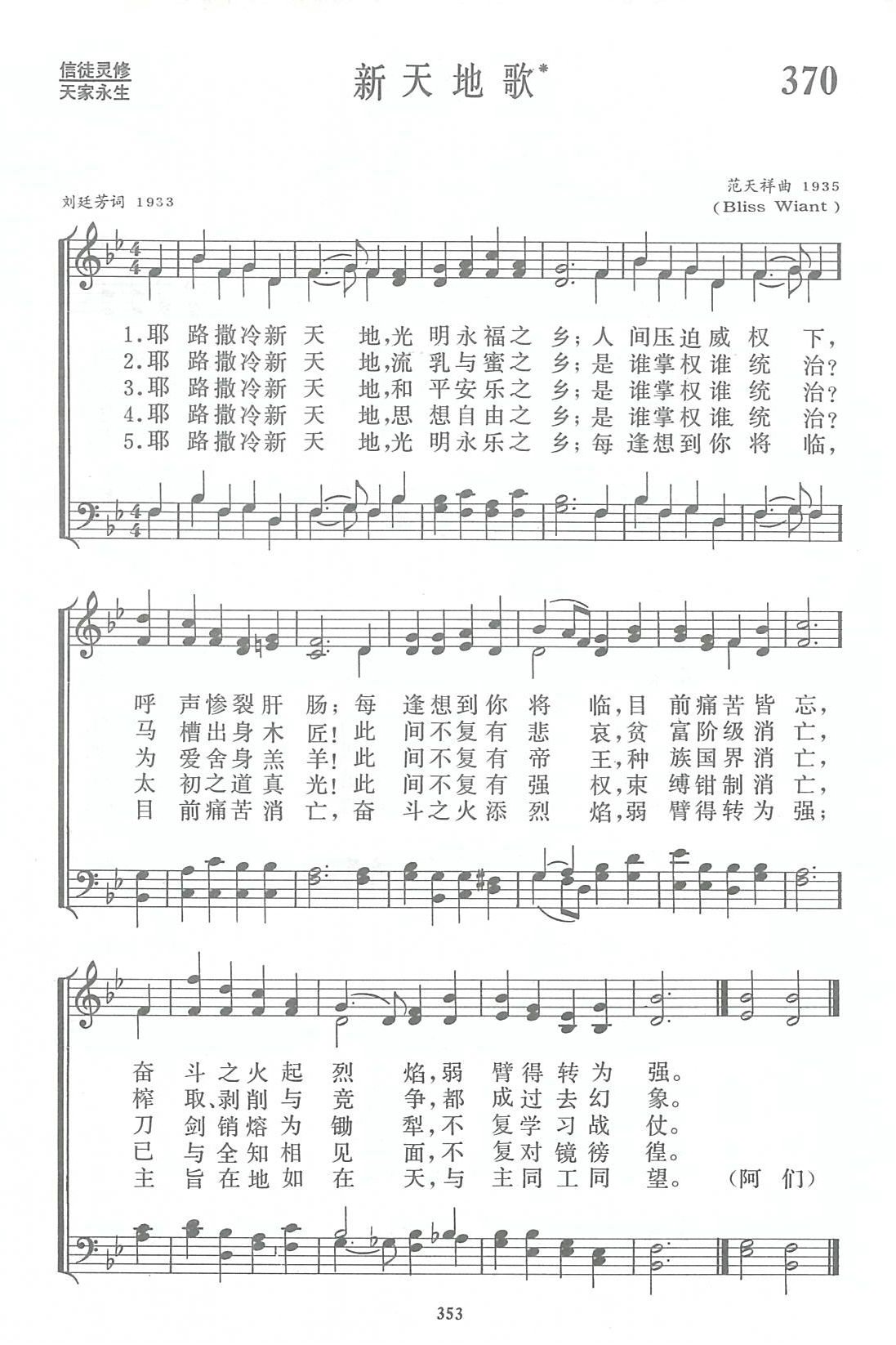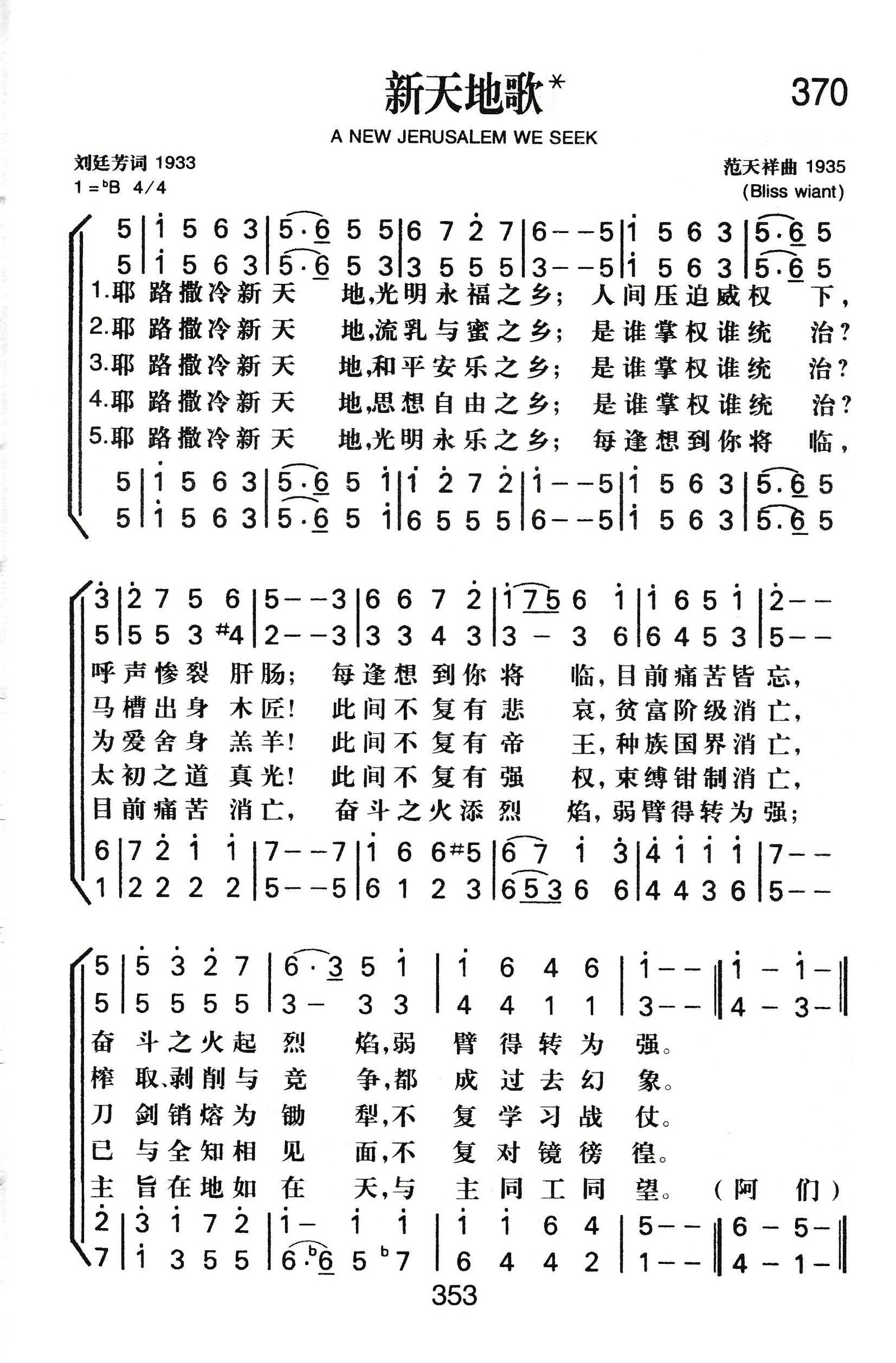 这首《新天地歌》是刘廷芳牧师 (事略参阅 165首)所作,收集在《普天颂赞》 (旧版)第245首。《新编》序言说:它“反映了中国基督徒在旧社会黑暗中对天国降临的向往。”