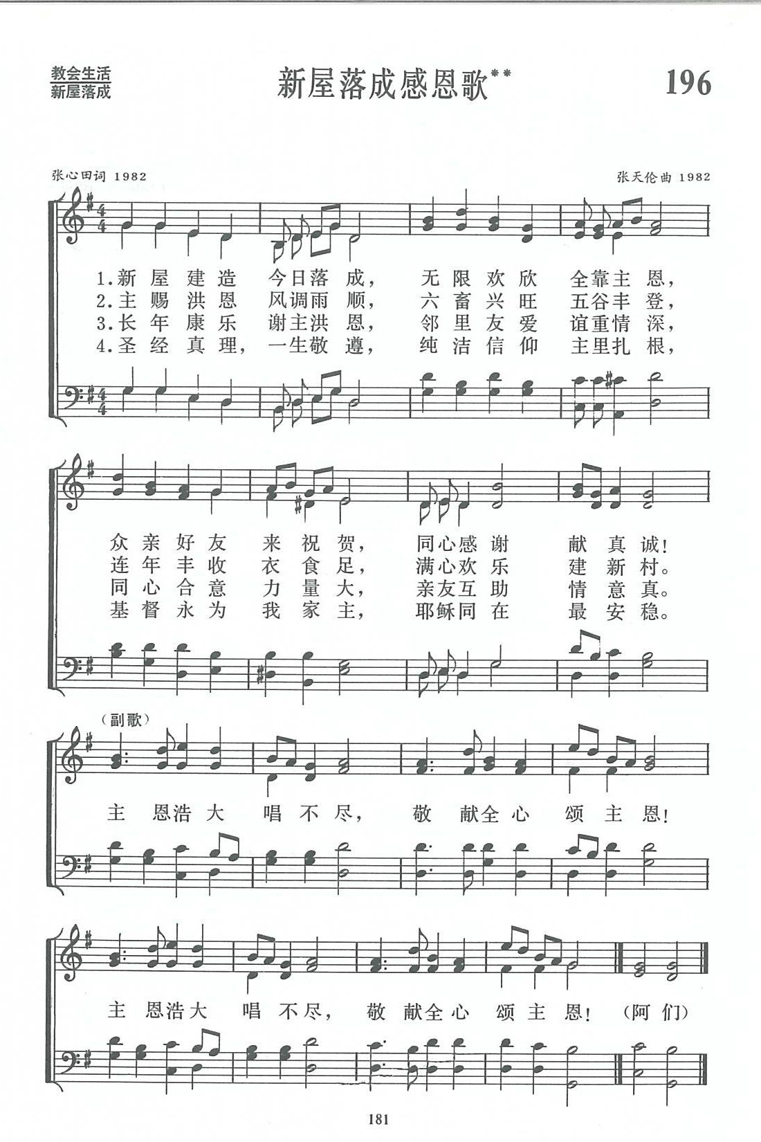 新屋落成感恩歌 《赞美诗(新编)》第196首