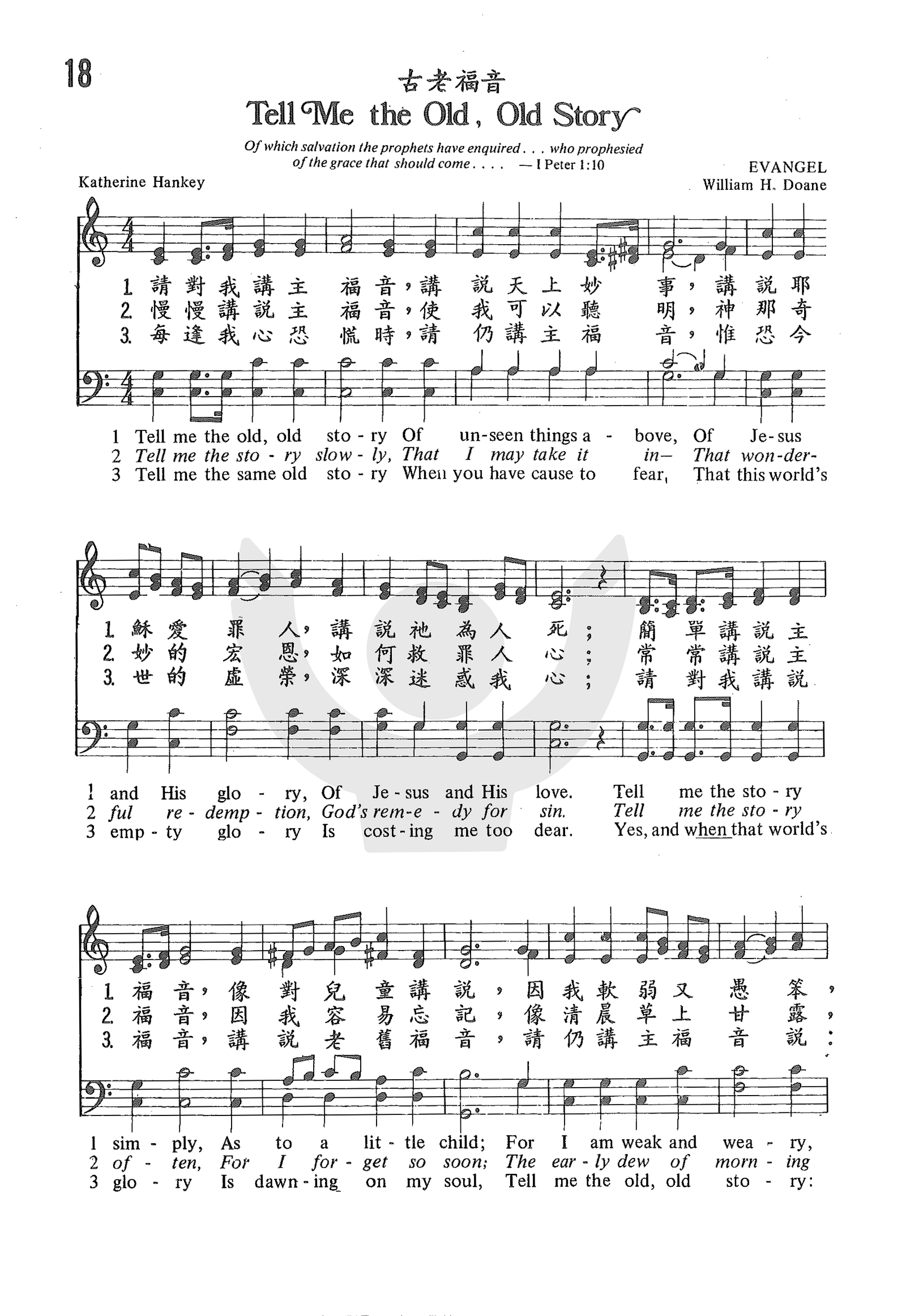 作词:阿拉贝拉·凯瑟琳·汉基(Arabella Katherine Hankey,1834 年生于英国克拉彭;1911 年卒于英国伦敦威斯敏斯特)是一位富有银行家的女儿,与威廉·威尔伯福斯的克拉彭教派有联系,该教派是来自克拉彭地区的一群著名的福音派圣公会教徒。该团体帮助建立了英国和外国圣经公会,推动废除奴隶制,并参与改善英国工人阶级的命运。汉基在伦敦为女店员教授圣经课程,探访当地医院的病人,并用她的写作收益来支持各种宣教事业。她的著作包括《心连心》(1870 年)和《老故事和其他诗句》(1879 年)。