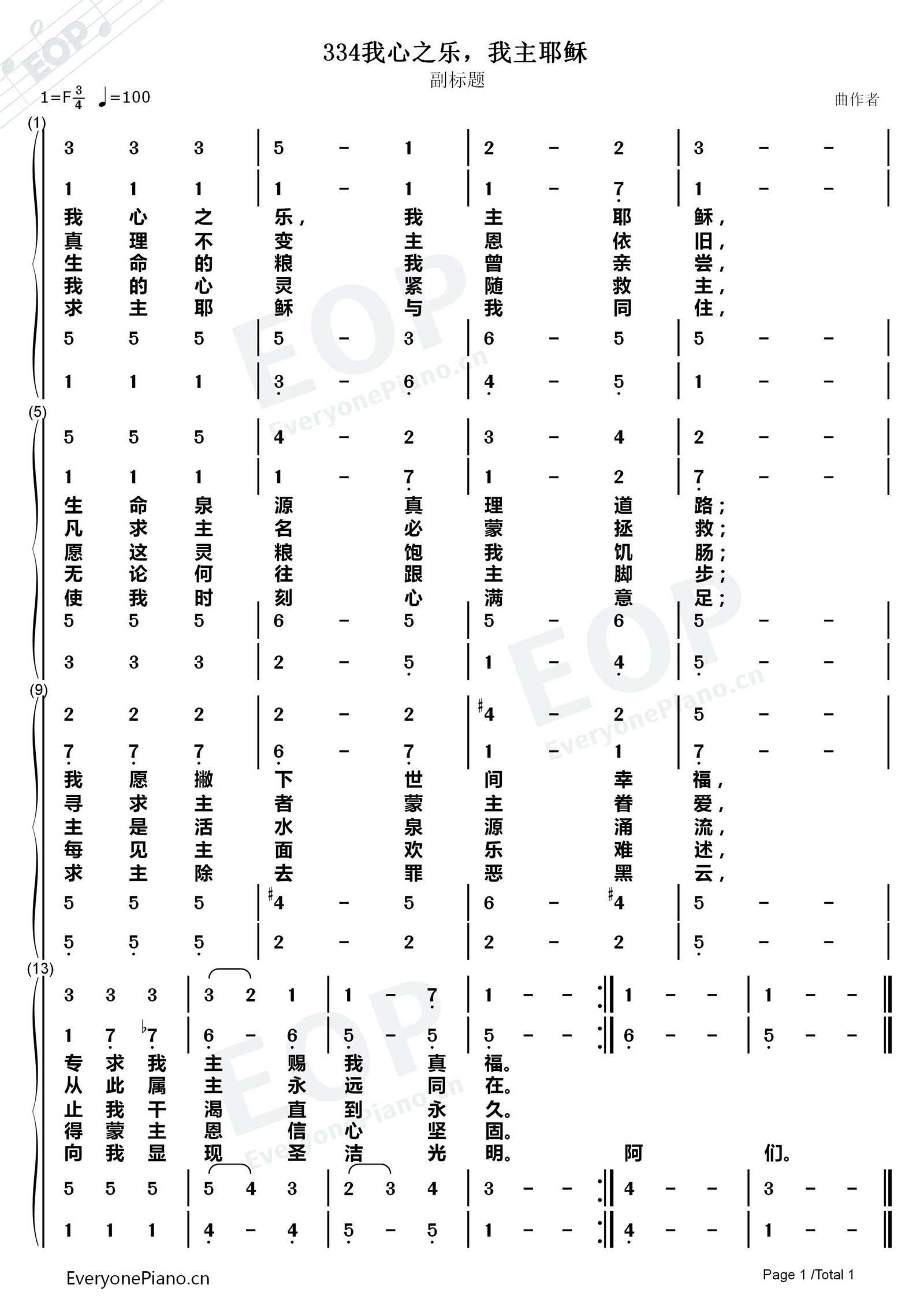 我心之樂,我主耶穌 选自《教会圣诗》第334首